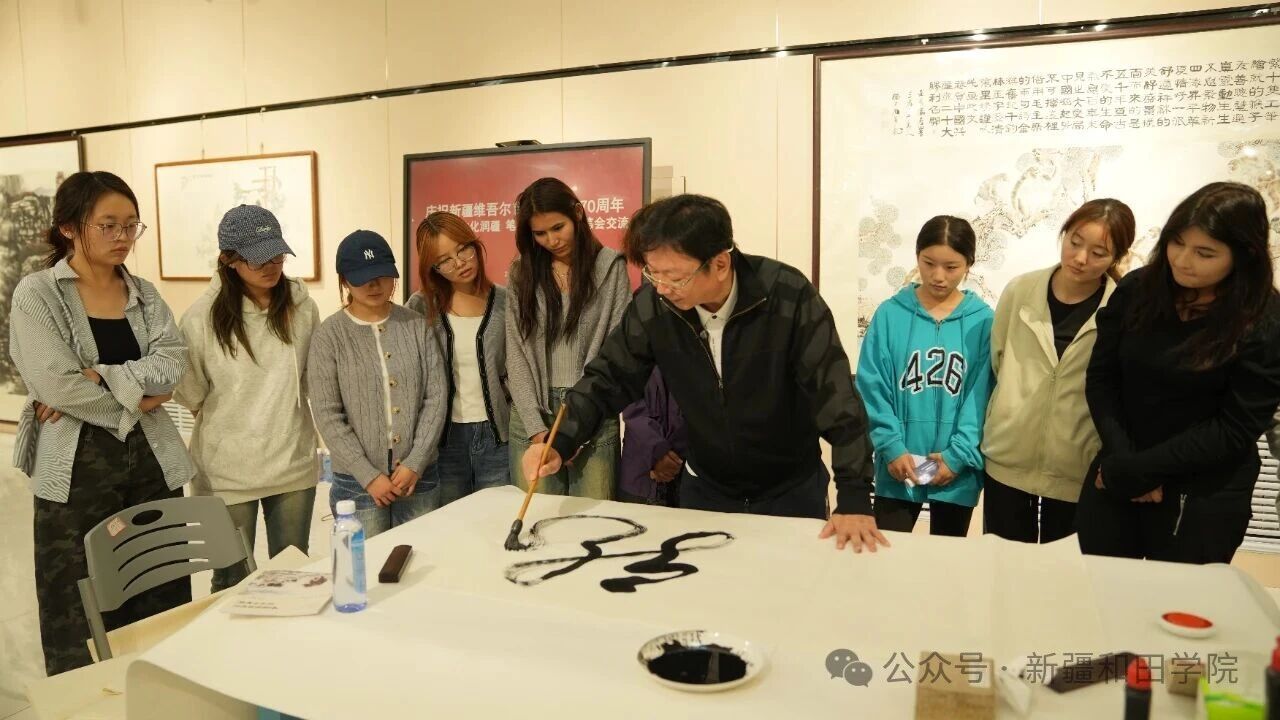10月11日下午,庆祝自治区成立70周年暨第三届“文化润疆 笔墨和田”书画笔会交流活动在我校艺术学院举行。