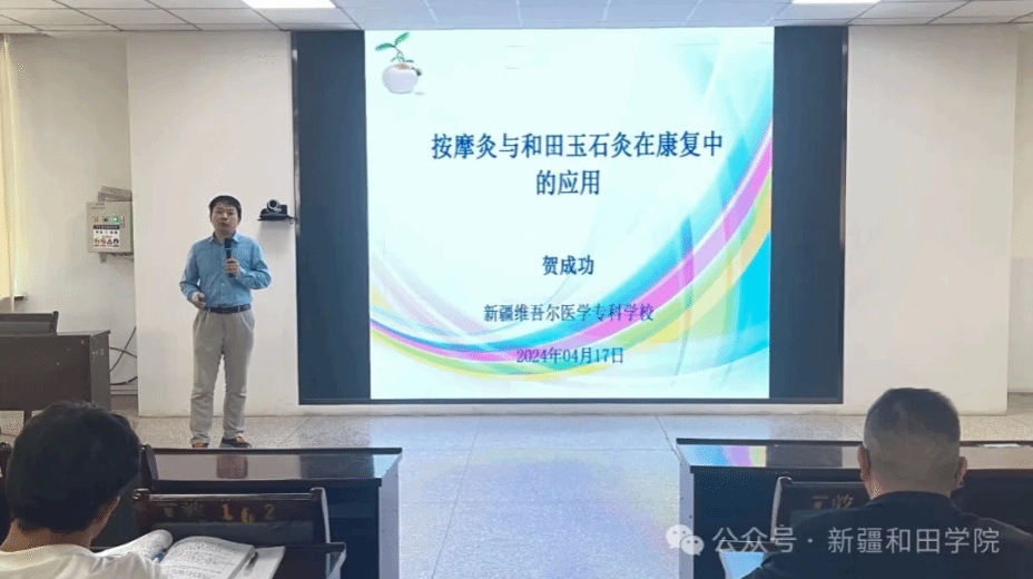 2023年5月,贺成功肩负着对口支援的使命,从江淮大地奔赴昆仑脚下,担任原新疆维吾尔医学专科学校(现新疆和田学院)检验康复系(现医学技术学院)主任。初到和田,他便一头扎进教学科研一线,不仅迅速熟悉学校升本攻坚的核心任务,更精准锚定学科发展的突破口。“和田有优质的和田玉资源,咱们有深厚的中医理论积淀,把这两者结合起来,一定能走出一条特色发展路。”在首次学科建设研讨会上,贺成功提出的跨界融合思路,让在场教师眼前一亮。