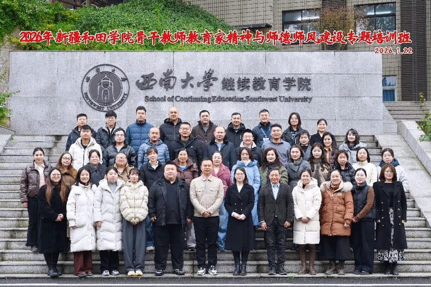 为深入贯彻落实党的二十届四中全会精神,扎实推进教育家精神培育工程,切实加强师德师风建设,全面提升骨干教师队伍育人水平,我校组织各学院师德骨干教师赴西南大学,参加新疆和田学院骨干教师教育家精神与师德师风建设专题培训班,着力以学促思、以研促行,为新时代教师队伍建设提供有力支撑。1月22日,培训班开幕式在西南大学继续教育学院举行,西南大学继续教育学院党委副书记、纪委书记、副院长秦小红出席会议,开幕式由西南大学继续教育学院高等教育培训部项目总监谭晓荣老师主持,我校40名培训教师参加会议。