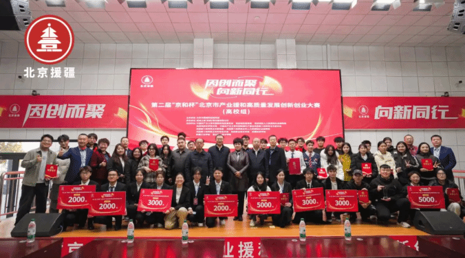 11月18日,第二届“京和杯”北京市产业援和高质量发展创新创业大赛(高校组)成功举办。大赛以“因创而聚,向新同行”为主题,旨在完整准确全面贯彻新时代党的治疆方略和中央关于新疆工作的决策部署,聚焦产业援疆与高质量发展,汇聚区域内4 所高校共 28 个项目参赛,涵盖文化创意、现代农业、智能制造、生态环保等多个领域。