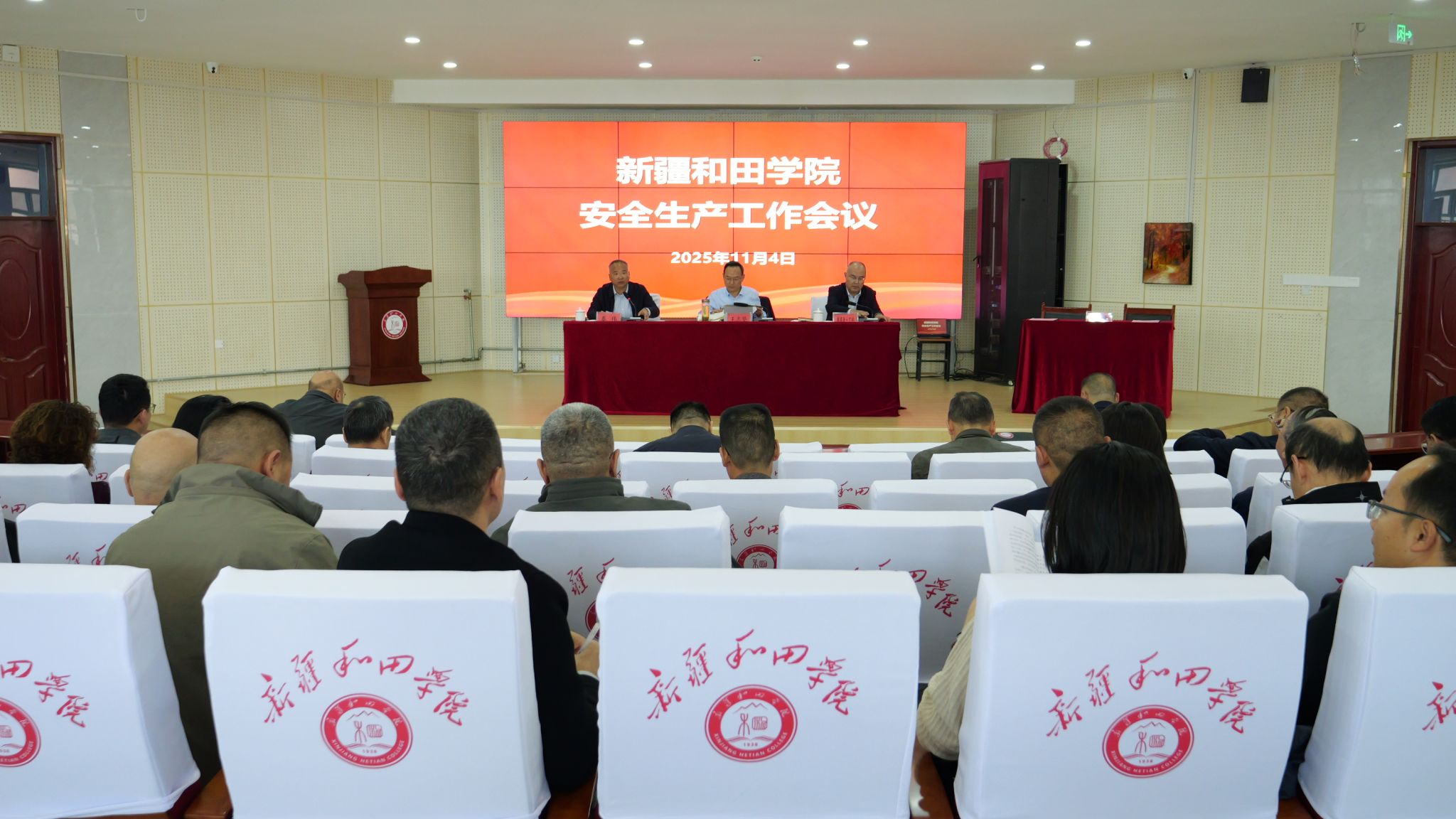 为深入贯彻落实习近平总书记关于安全生产的重要论述和重要指示批示精神,全面压实校园安全生产责任,切实保障师生生命财产安全与校园稳定,11 月 4 日 ,新疆和田学院安全生产工作会议在昆仑路校区明德楼二楼会议室召开。校党委副书记、院长王志坚,党委常委、副院长赛甫鼎·艾拜出席会议,各部门主要领导及二级学院负责人参加会议,会议由党委常委、副院长秦伟主持。