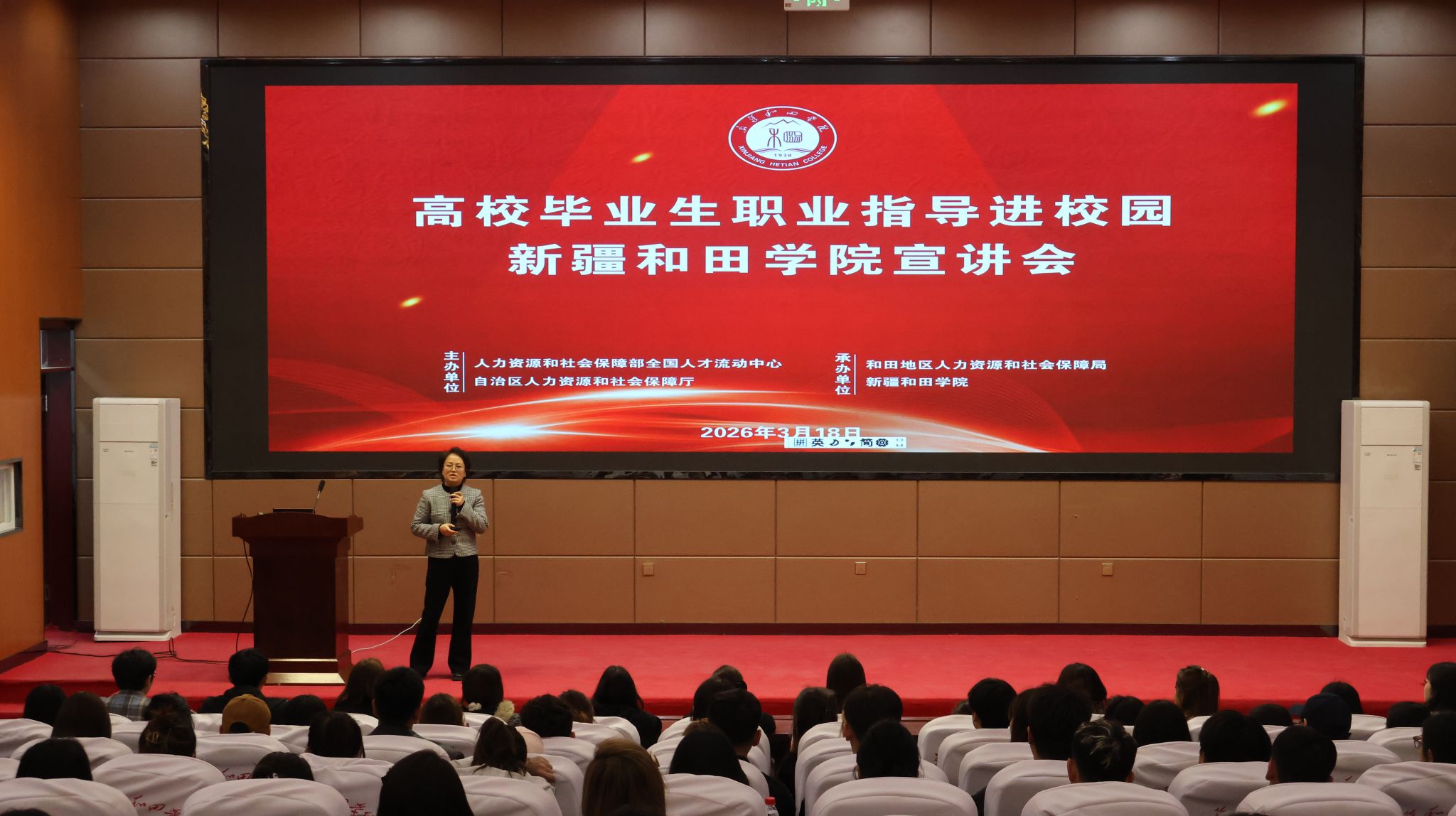 3月18日下午,我校昆仑校区内人头攒动,气氛热烈。自治区2026年高校毕业生春季招聘大会暨全国城市联合招聘新疆和田学院专场活动举行。此次活动不仅为即将踏入职场的学子们搭建了广阔的就业平台,更以其独特的“校友反哺”模式和深入的就业指导服务,成为校园里一道亮丽的风景线。