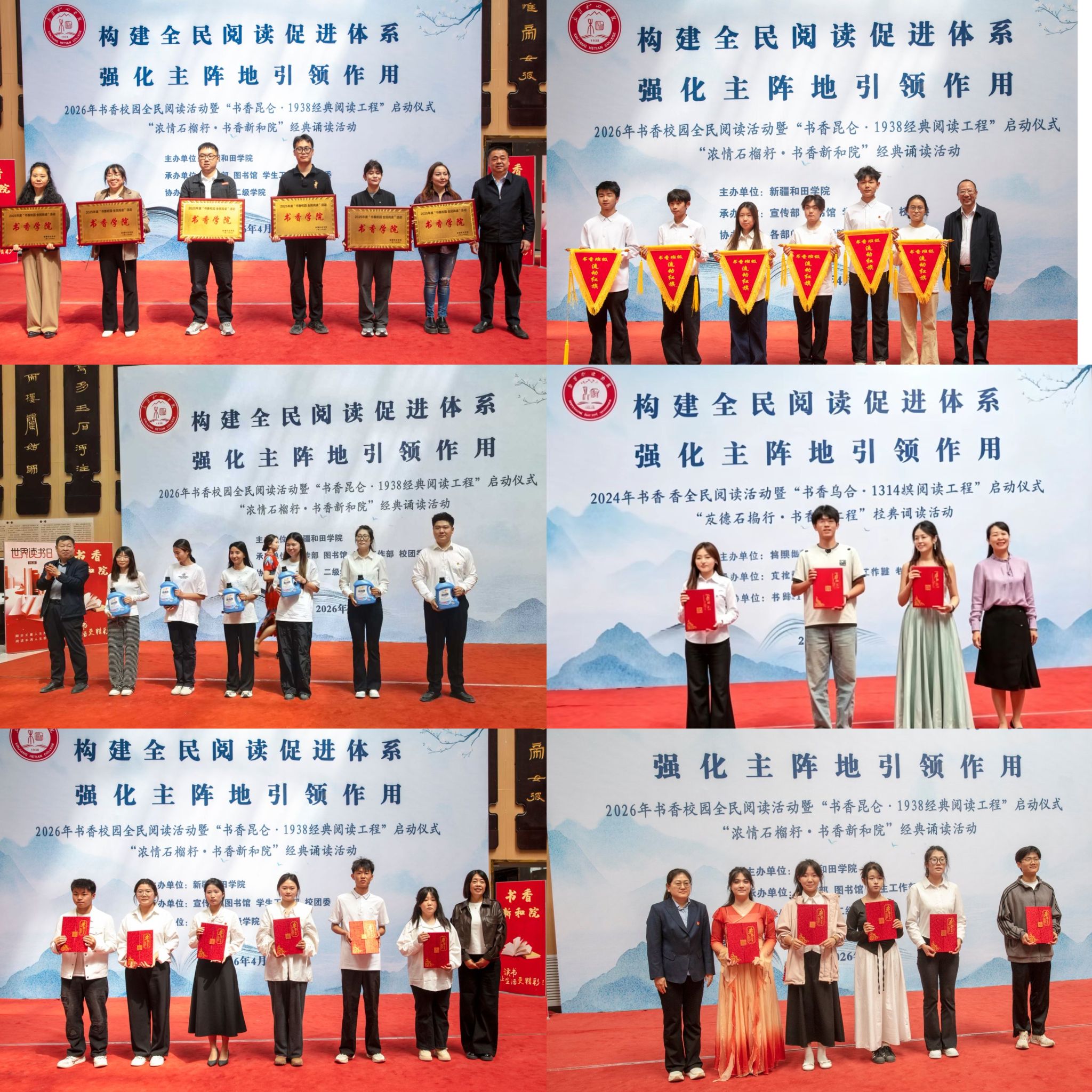 校党委常委、副院长张增田宣读《关于表彰2025年度“书香校园·全民阅读”活动先进集体及个人的决定》,对2025年度全民阅读活动中涌现的6个“书香学院”、34个“书香班级”、42间“书香寝室”、88名“优秀阅读推广人”和85名“优秀读者”进行表彰,号召全校师生以先进为榜样,勤学善思、博览群书,不断增强文化自觉、坚定文化自信。