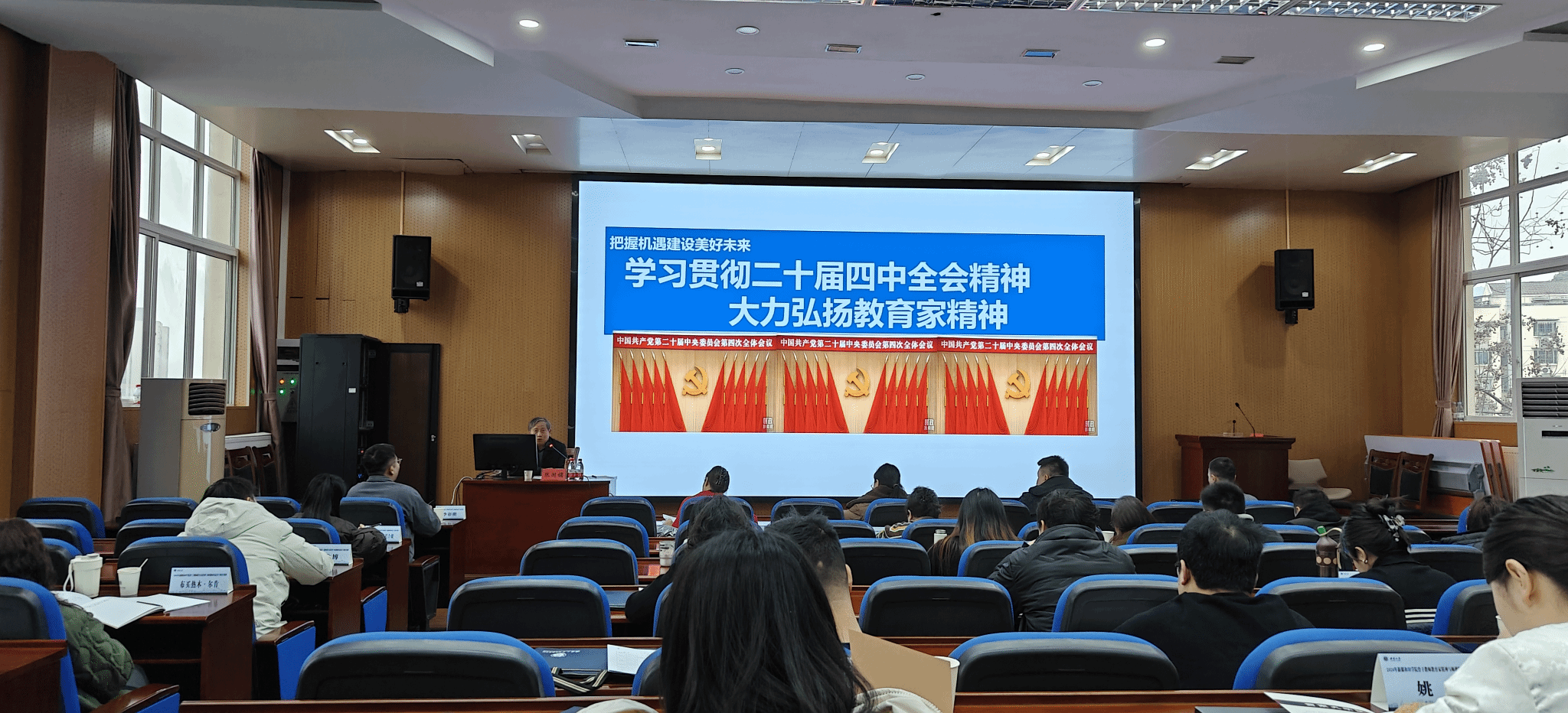 为深入贯彻落实党的二十届四中全会精神,扎实推进教育家精神培育工程,切实加强师德师风建设,全面提升骨干教师队伍育人水平,我校组织各学院师德骨干教师赴西南大学,参加新疆和田学院骨干教师教育家精神与师德师风建设专题培训班,着力以学促思、以研促行,为新时代教师队伍建设提供有力支撑。1月22日,培训班开幕式在西南大学继续教育学院举行,西南大学继续教育学院党委副书记、纪委书记、副院长秦小红出席会议,开幕式由西南大学继续教育学院高等教育培训部项目总监谭晓荣老师主持,我校40名培训教师参加会议。