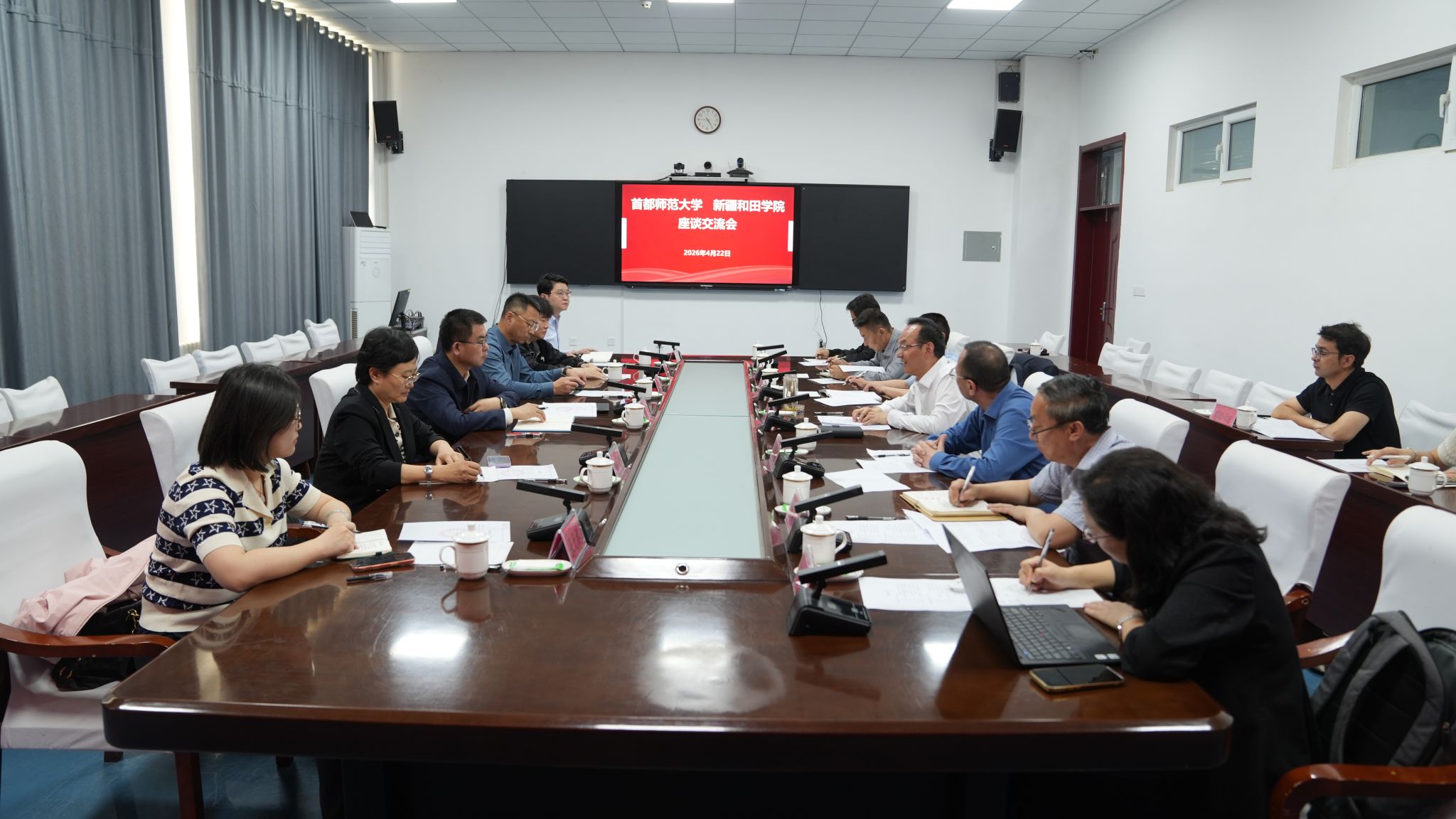 双方围绕对口支援工作深入交流、凝聚共识。双方表示,北京与和田虽远隔千山万水,但“京和一家亲”的深厚情谊将两校紧密相连,首都师范大学与新疆和田学院的协作,既是落实国家对口支援战略的具体举措,也是铸牢中华民族共同体意识的生动实践。
