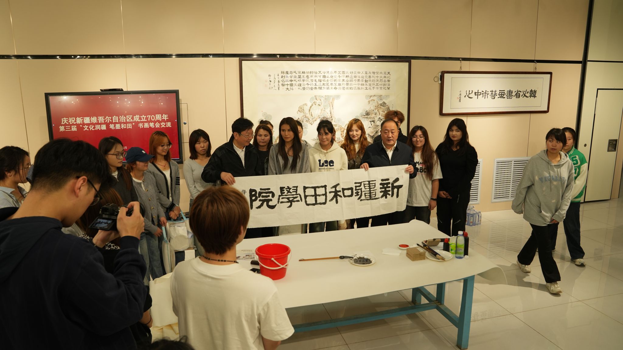 10月11日,在欢庆新疆维吾尔自治区成立70周年的喜庆氛围中,第三届"文化润疆 笔墨和田"书画作品展在和田地区博物馆开幕。活动不仅是和田文化建设的一件盛事,也是天津援疆工作聚焦文化润疆工程、促进各民族交往交流交融的生动实践与成果展示。 和田地委副书记罗彦林,和田地委副书记、天津市援疆前方指挥部总指挥陆盈,我校党委书记季峰,民革中央画院、天津市政协文化和文史委、民革天津市委会等主办单位的有关人员,及津和两地的知名艺术家出席活动。...